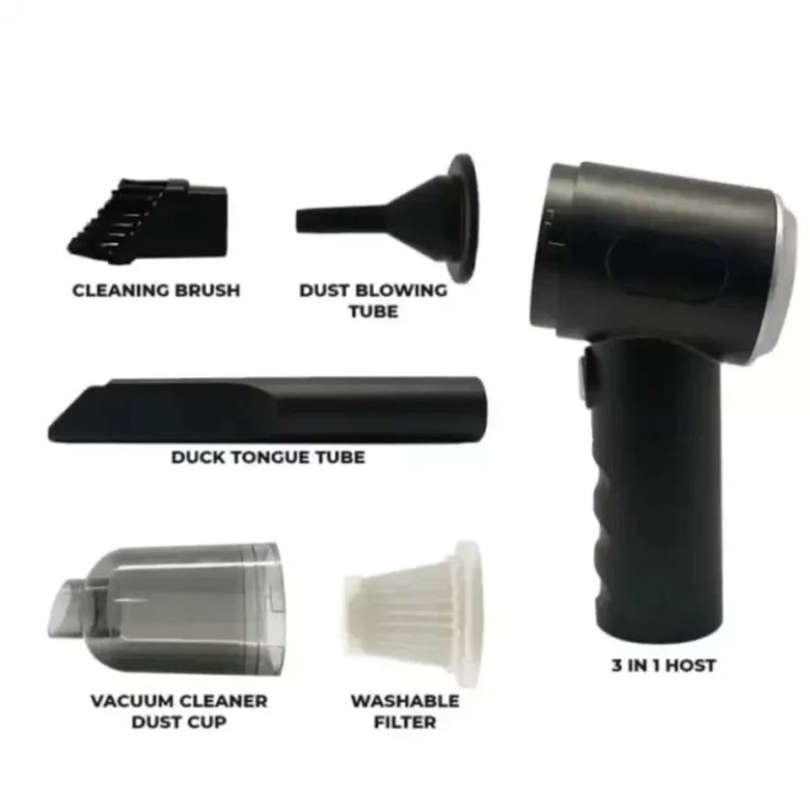 Tired of dust, crumbs, and dirt hiding in every corner? π© Meet the ultimate cleaning essential: our 3-in-1 Portable Vacuum & Air Duster! This revolutionary, cordless device combines a powerful vacuum with a precision air duster, giving you a complete cleaning solution for your car, home, and office.